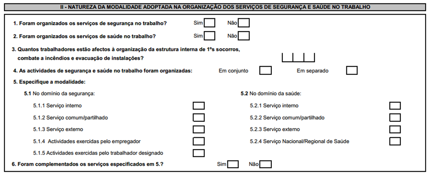 No ANEXO D - Relatório Anual das Atividades do Serviço de Segurança, Higiene e Saúde no Trabalho terá de preencher informações como: